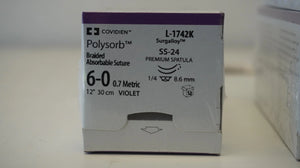 COVIDIEN | L-1742K | PACK of 12/pc | Polysorb Braided Absorbable Suture 6-0 0.7 Metric 17" 30cm VIOLET