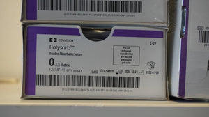COVIDIEN L-27 PACK of 24/pc Polysorb Braided Absorbable Suture 0 3.5 Metric 12x18" 45cm VIOLET
