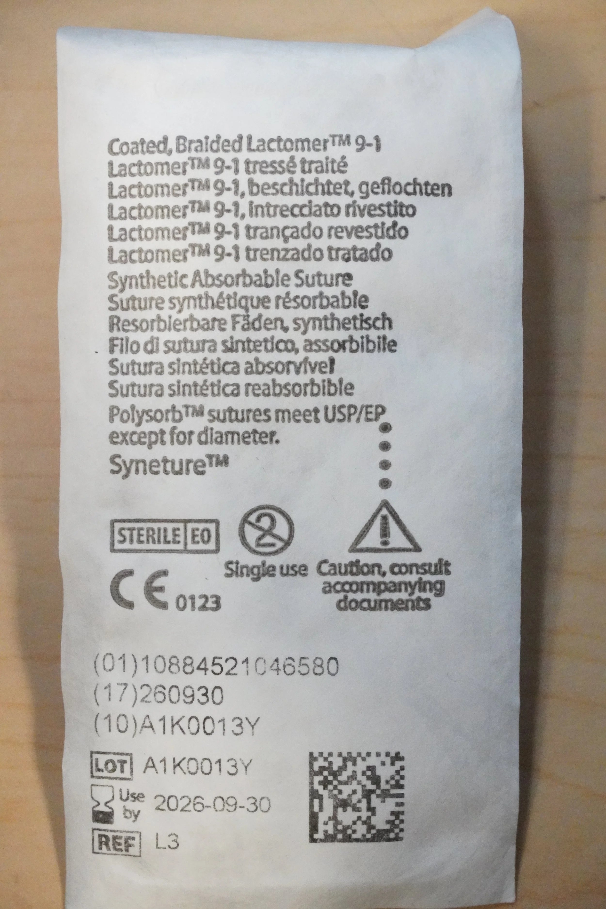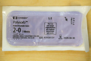 COVIDIEN | L-3 | EACHES | Polysorb Braided Absorbable Suture 2-0 3 Metric 12x18" 45cm UNDYED
