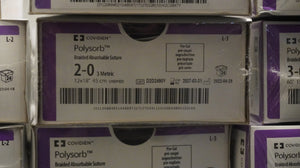 COVIDIEN PACK of 24/pc Polysorb Braided Absorbable Suture 2-0 3 Metric 12x18" 45cm UNDYED