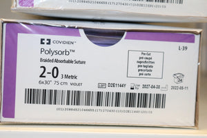 Covidien | L-39 | Polysorb Braided Absorbable Suture 2-0 3 Metric 6x30" 75cm VIOLET