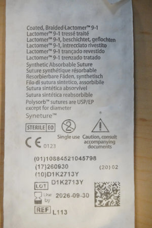 COVIDIEN | L113 | EACHES | Polysorb Braided Absorbable Suture 2-0 3 Metric 60" 150cm VIOLET