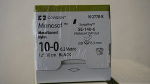 COVIDIEN | N-2770-K | SHORT DATE | BOX OF 12 | Monosof Monofilament Nylon 10-0 0.2 Metric 12" 30cm BLACK