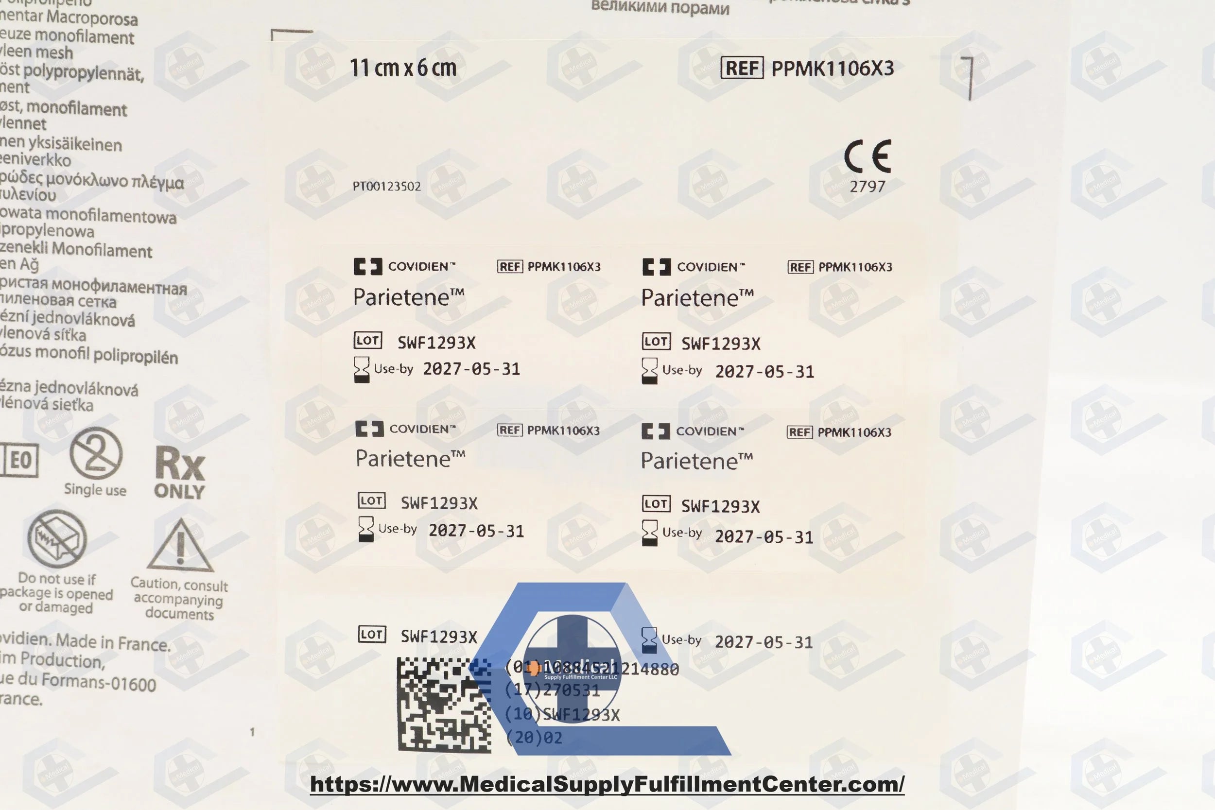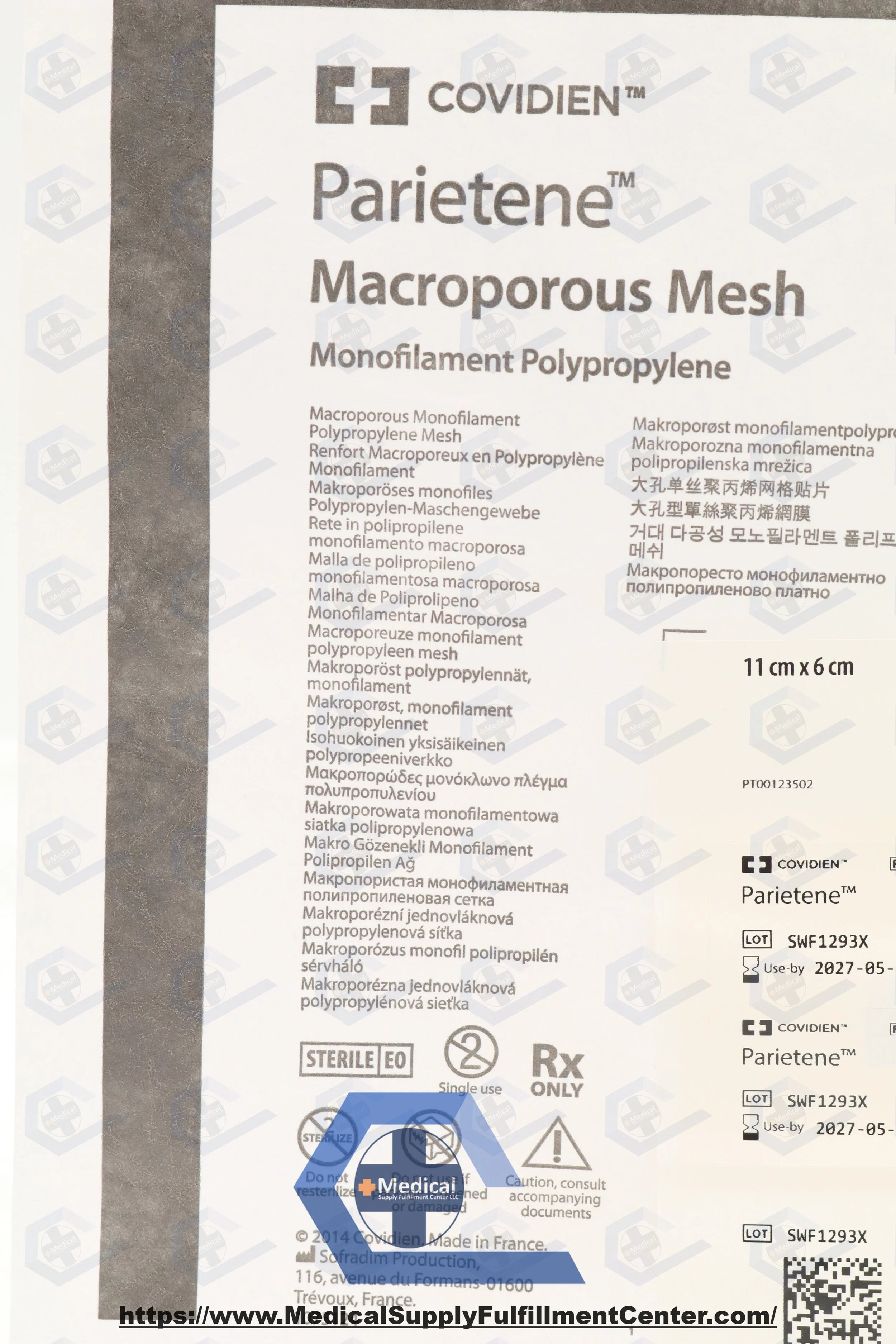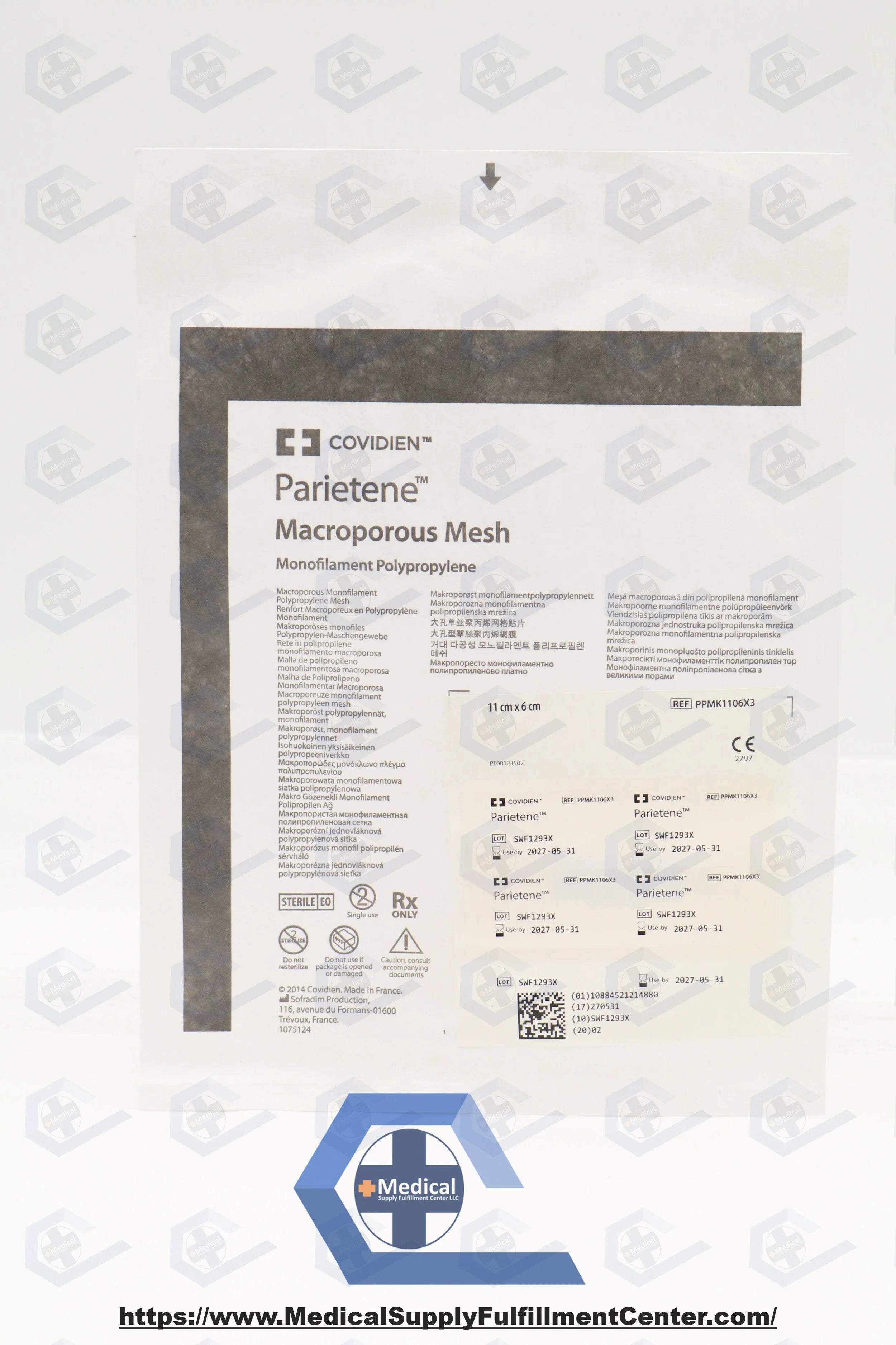 Covidien | PPMK1106X3 | PARIETENE MACROPOROUS MESH MONOFILAMENT POLYPROPYLENE, 11CM X 6CM
