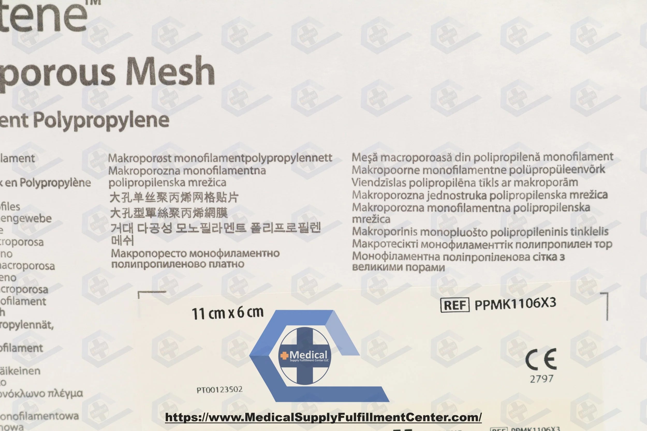 COVIDIEN | PPMK1106X3 | IN-DATE | EACHES | PARIETENE MACROPOROUS MESH MONOFILAMENT POLYPROPYLENE, 11CM X 6CM