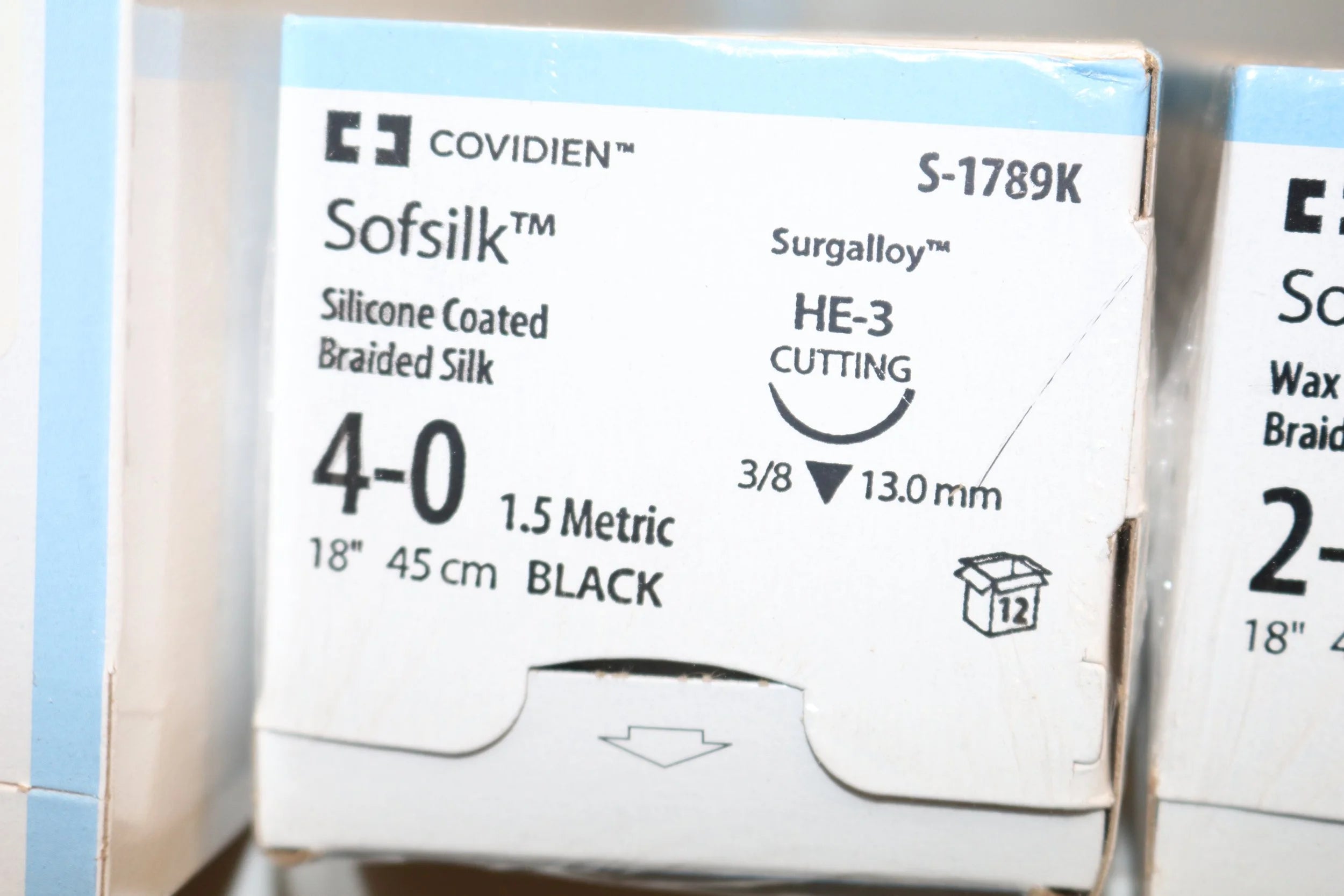 COVIDIEN Softsilk Wax Coated Braided Silk 4-0 1.5 Metric 18" 45cm BLACK PACK of 12/pc