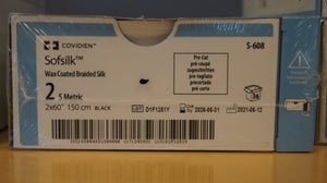 Covidien | S-608 | Sofsilk Wax Coated Braided Silk 2 5 Metric 2x60" 150cm BLACK