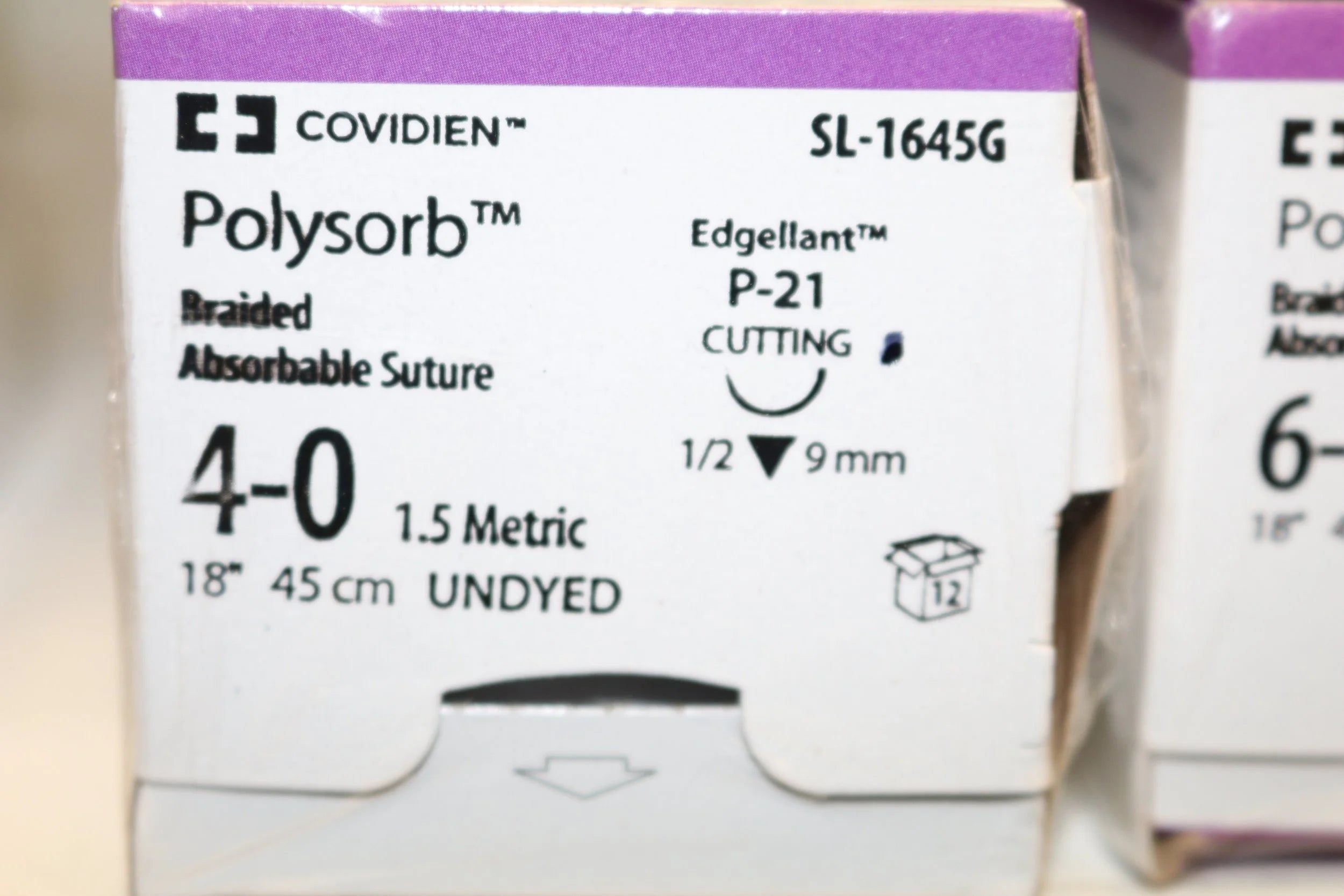 COVIDIEN Polysorb Braided Absorbable Suture 4-0 1.5 Metric 18" 45cm UNDYED PACK of 12/pc