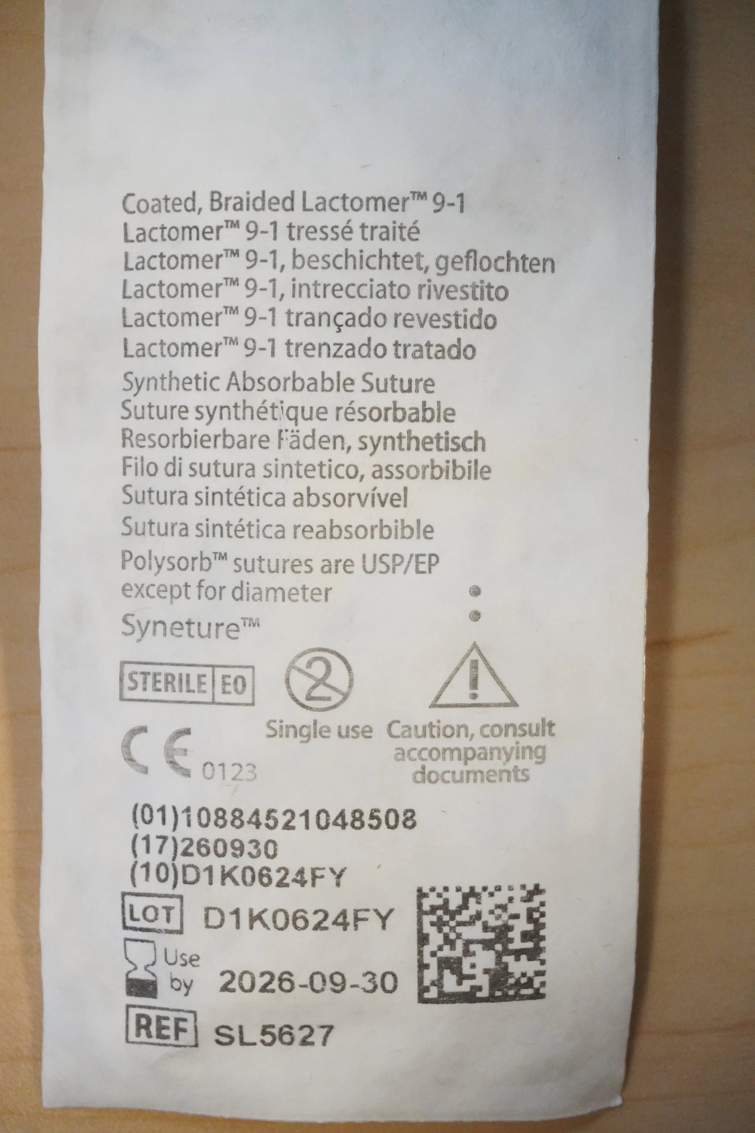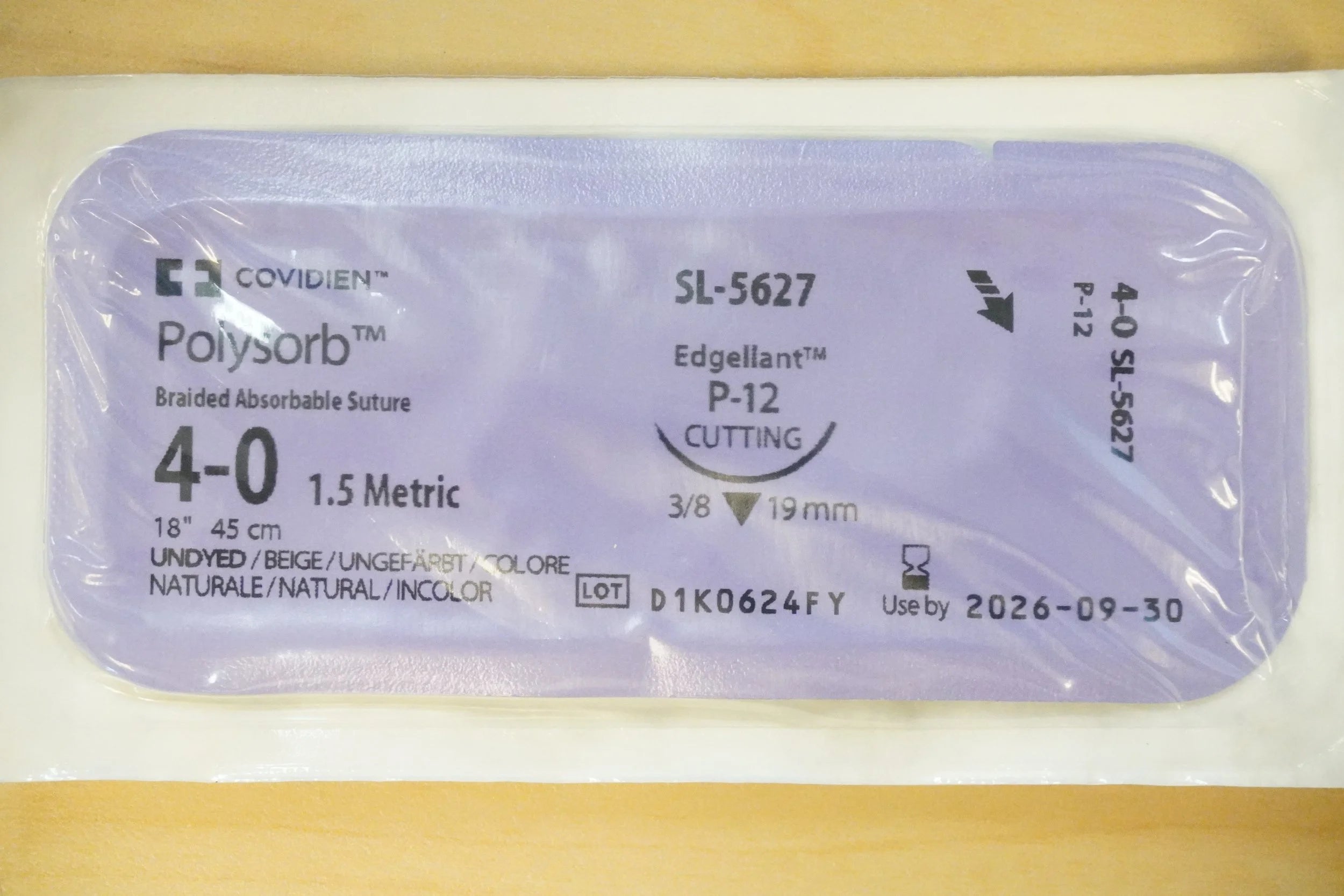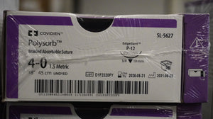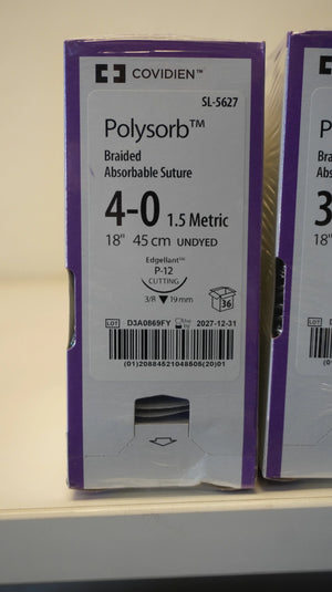 COVIDIEN SL-5627 PACK of 36/pc Polysorb Braided Absorbable Suture 4-0 1.5 Metric 18" 45cm UNDYED