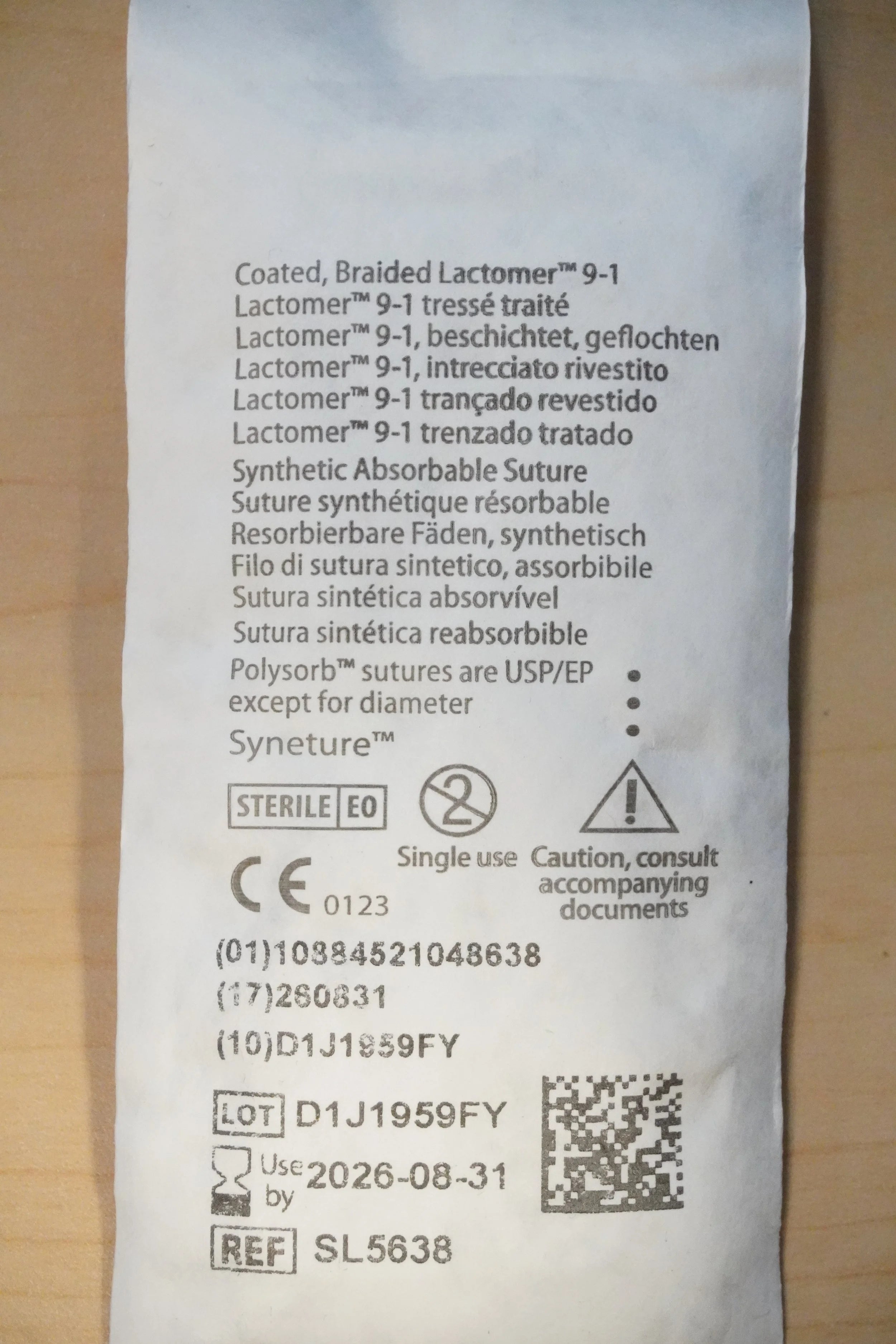 COVIDIEN | SL-5638 | EACHES | Polysorb Braided Absorbable Suture 4-0 1.5 Metric 30" 75cm UNDYED