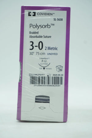 COVIDIEN | SL-5638 | Box of 36 | Polysorb Braided Absorbable Suture 4-0 1.5 Metric 30" 75cm UNDYED