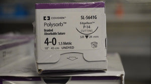 COVIDIEN SL-5641G PACK of 12/pc Polysorb Braided Absorbable Suture 7-0 1.5 Metric 18" 45cm UNDYED