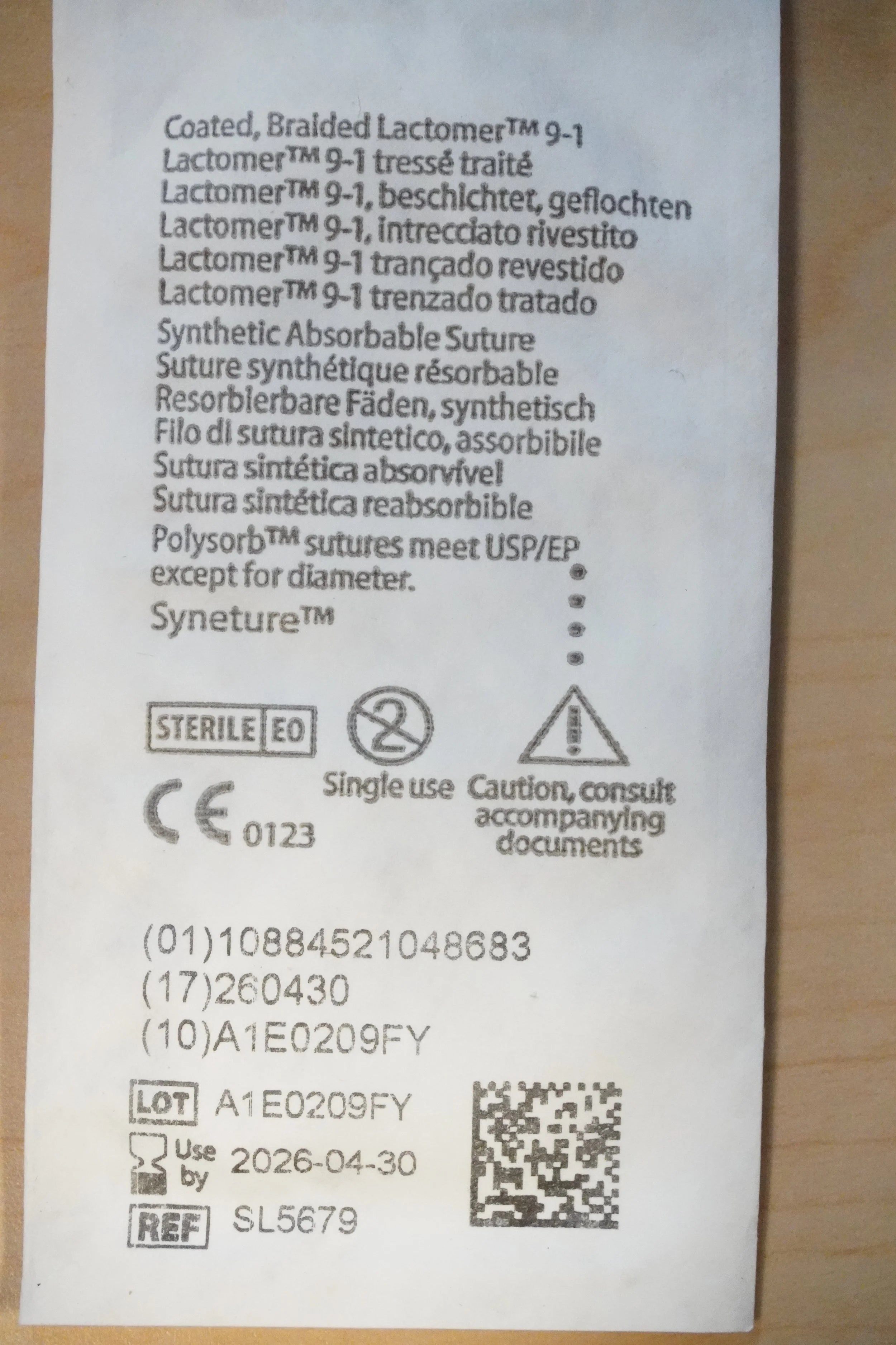 COVIDIEN | SL-5679 | EACHES | Polysorb Braided Absorbable Suture 3-0 2 Metric 30" 75cm UNDYED