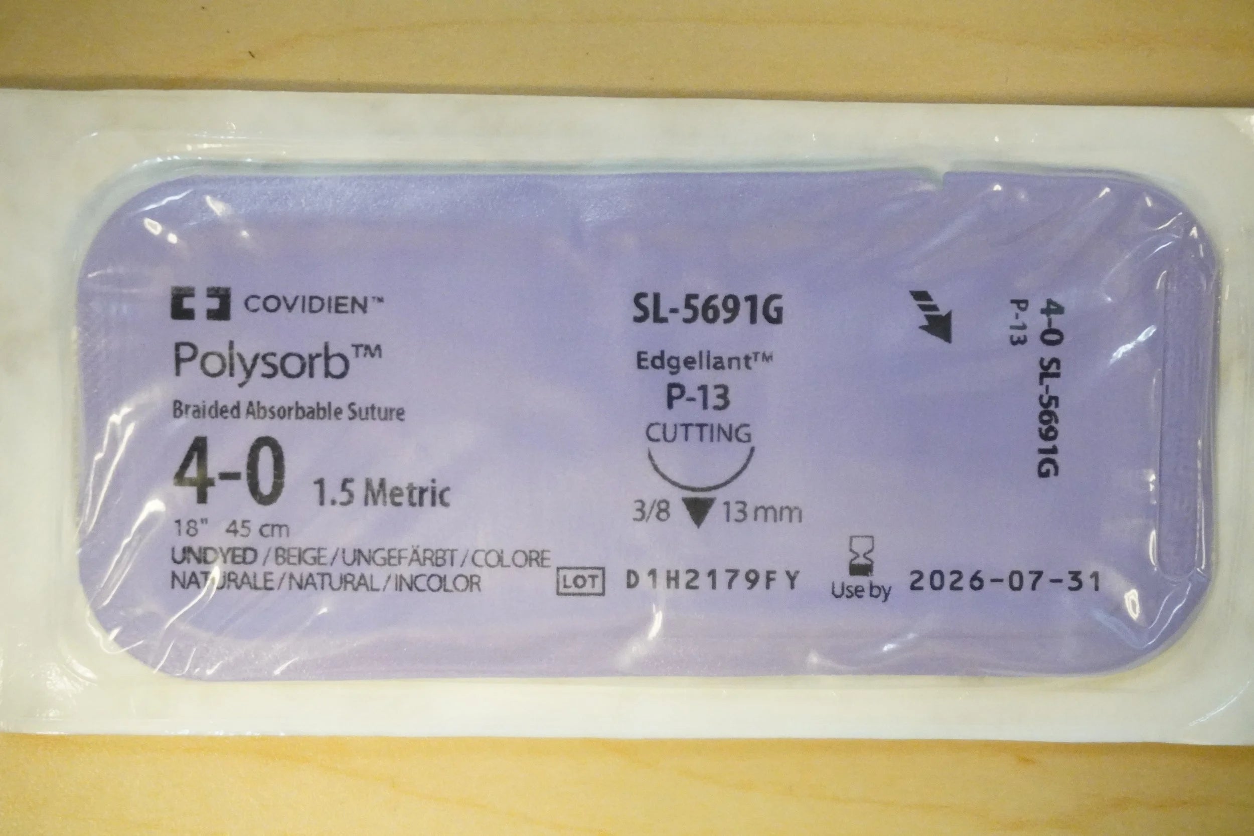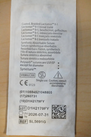 COVIDIEN | SL-5691G | Pack of 12/pc | Braided Absorbable Suture 4-0 1.5 Metric 18" 45cm UNDYED
