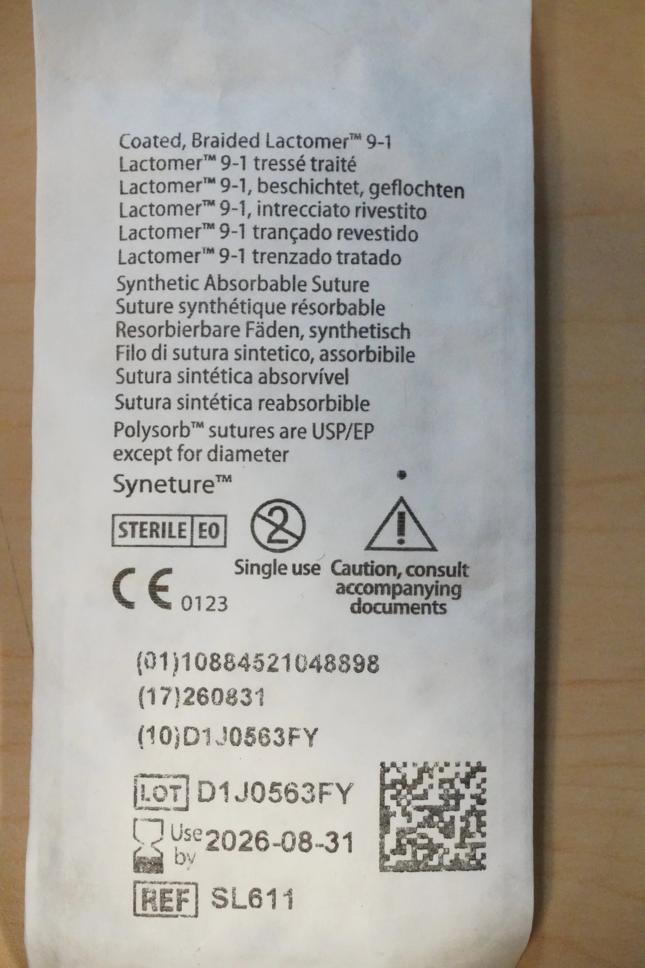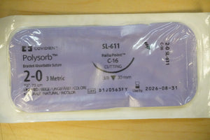COVIDIEN | SL-611 | EACHES | Polysorb Braided Absorbable Suture 2-0 Metric 30" 5cm UNDYED