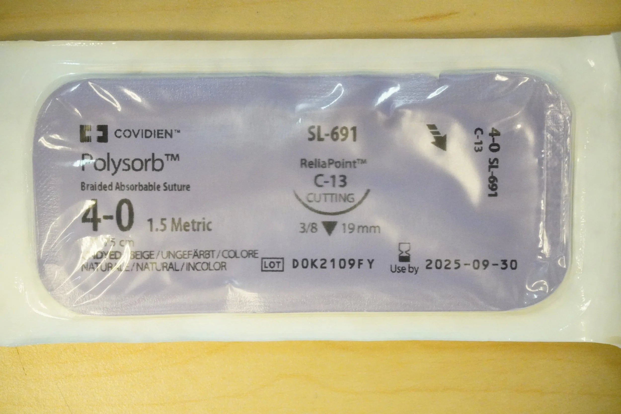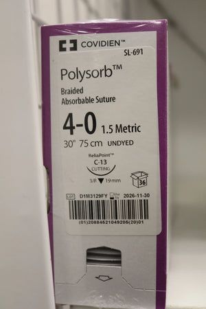 Covidien | SL-691 | Polysorb Braided Absorbable Suture 4-0 1.5 Metric 30" 75cm UNDYED