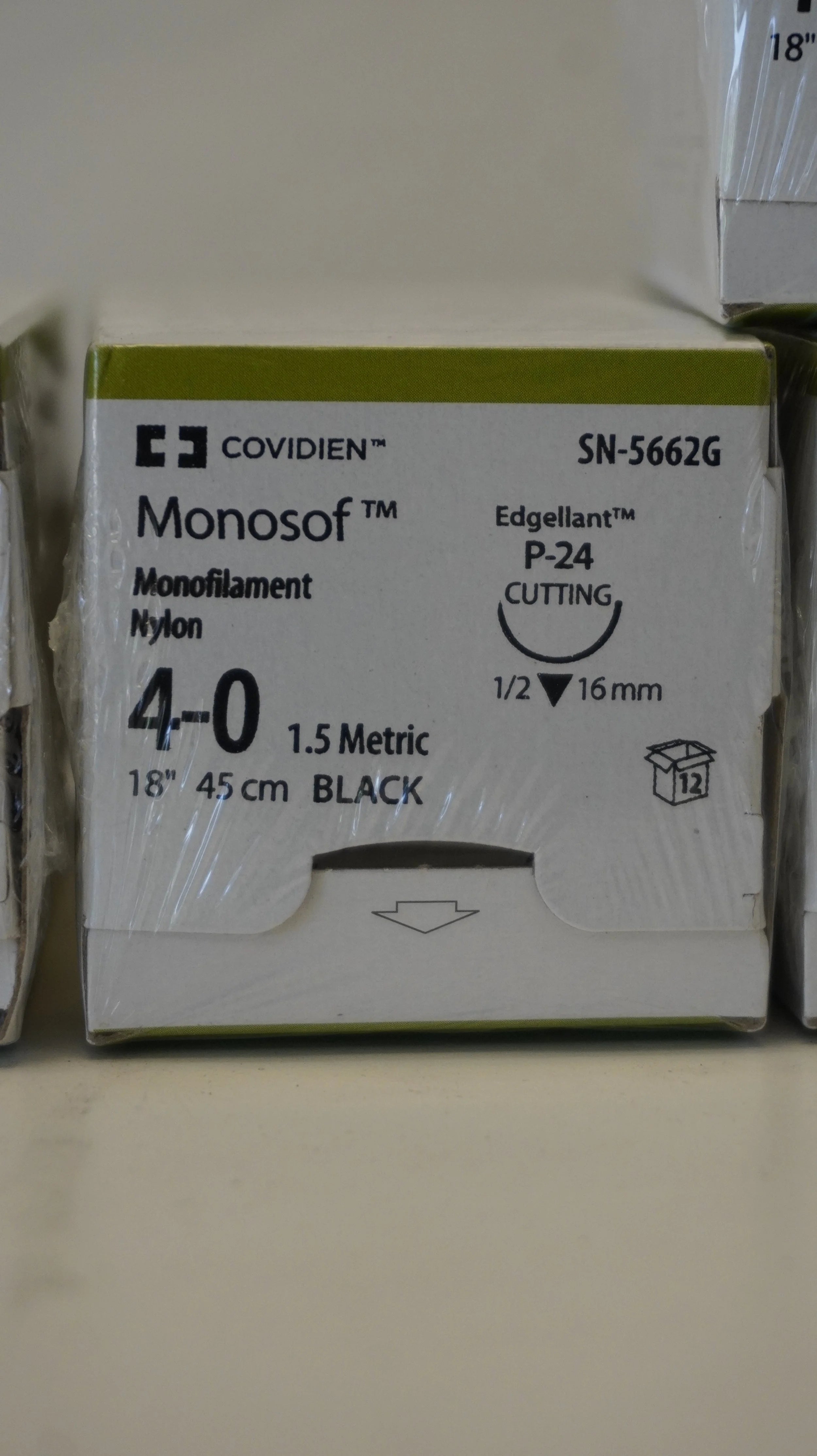 COVIDIEN SN-5662G PACK of 12/pc Monosof Monofilament Nylon 4-0 1.5 Metric 18" 45cm BLACK