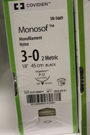 Covidien | SN-5669 | Monosof Monofilament Nylon 3-0 2 Metric 18" 45cm BLACK