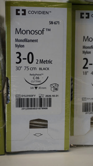 COVIDIEN SN-671 PACK of 36/pc Monosof Monofilament Nylon 3-0 2 Metric 30" 75cm BLACK