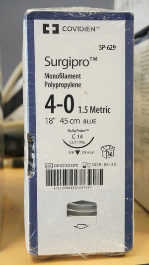 COVIDIEN | SP-629 | PACK of 36/pc | Surgipro Monofilament Polypropylene 4-0 1.5 Metric 18" 45cm BLUE