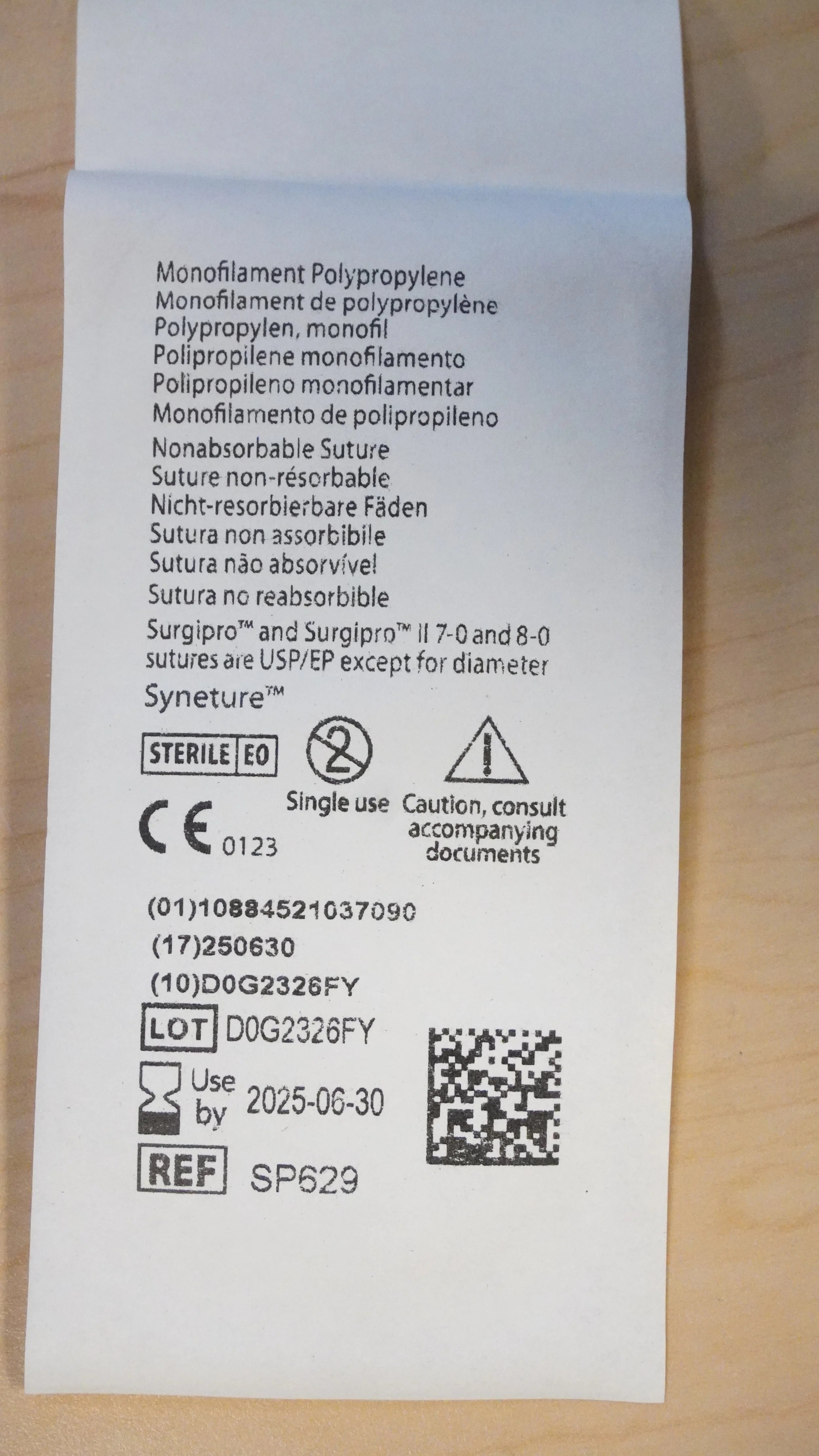 Covidien | SP-629 | Surgipro Monofilament Polypropylene 4-0 1.5 Metric 18" 45cm BLUE