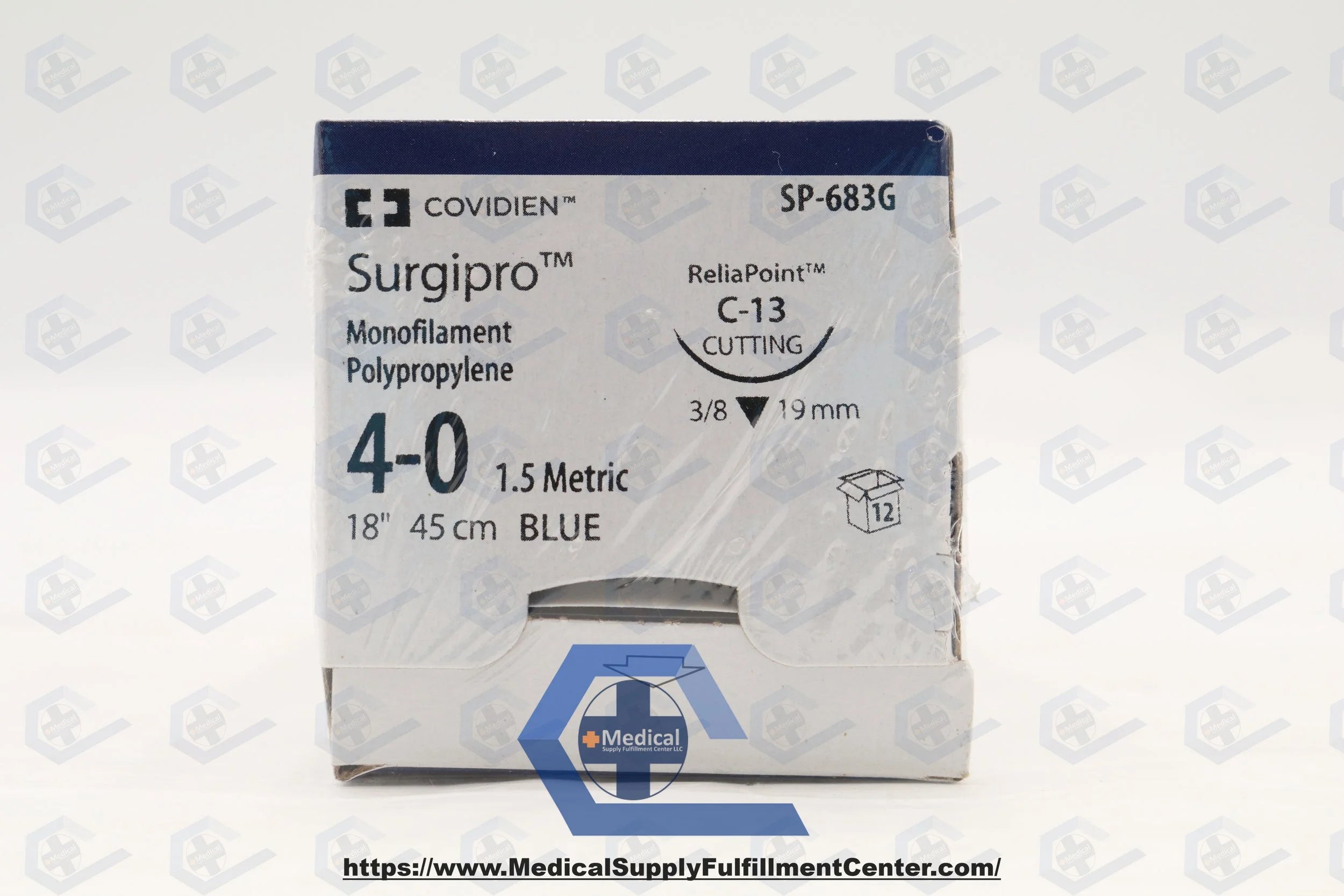 COVIDIEN | SP-683G | IN-DATE | BOX OF 12 | Suture, Size 4-0, 18 in. Length, Blue, Polypropylene, Monofilament, 3/8 Circle, 19 mm Needle Length, C-13 Needle, Reverse Cutting Needle Point