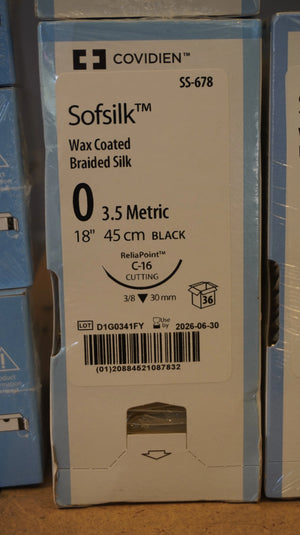 COVIDIEN S-678 PACK of 36/pc Sofsilk Wax Coated Braided Silk 0 3.5 Metric 18" 45cm BLACK