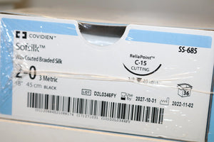 Covidien | SS-685 | Softsilk Wax Coated Braided Silk 2-0 3 Metric 18" 45cm BLACK