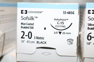COVIDIEN Softsilk Wax Coated Braided Silk 2-03 Metric 18" 45cm BLACK PACK of 12/pc