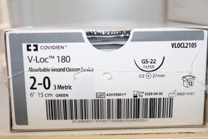 Covidien | VLOCL2105 | V-LOC 180 Absorbable Wound Closure Device 2-0 3 Metric 6" 15cm GREEN VLOC2105