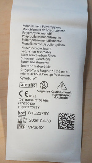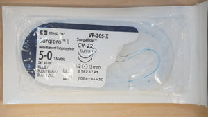 COVIDIEN | VP-205-X | EACHES | Surgipro Monofilament Polypropylene 5-0 1 Metric 24" 60cm BLUE