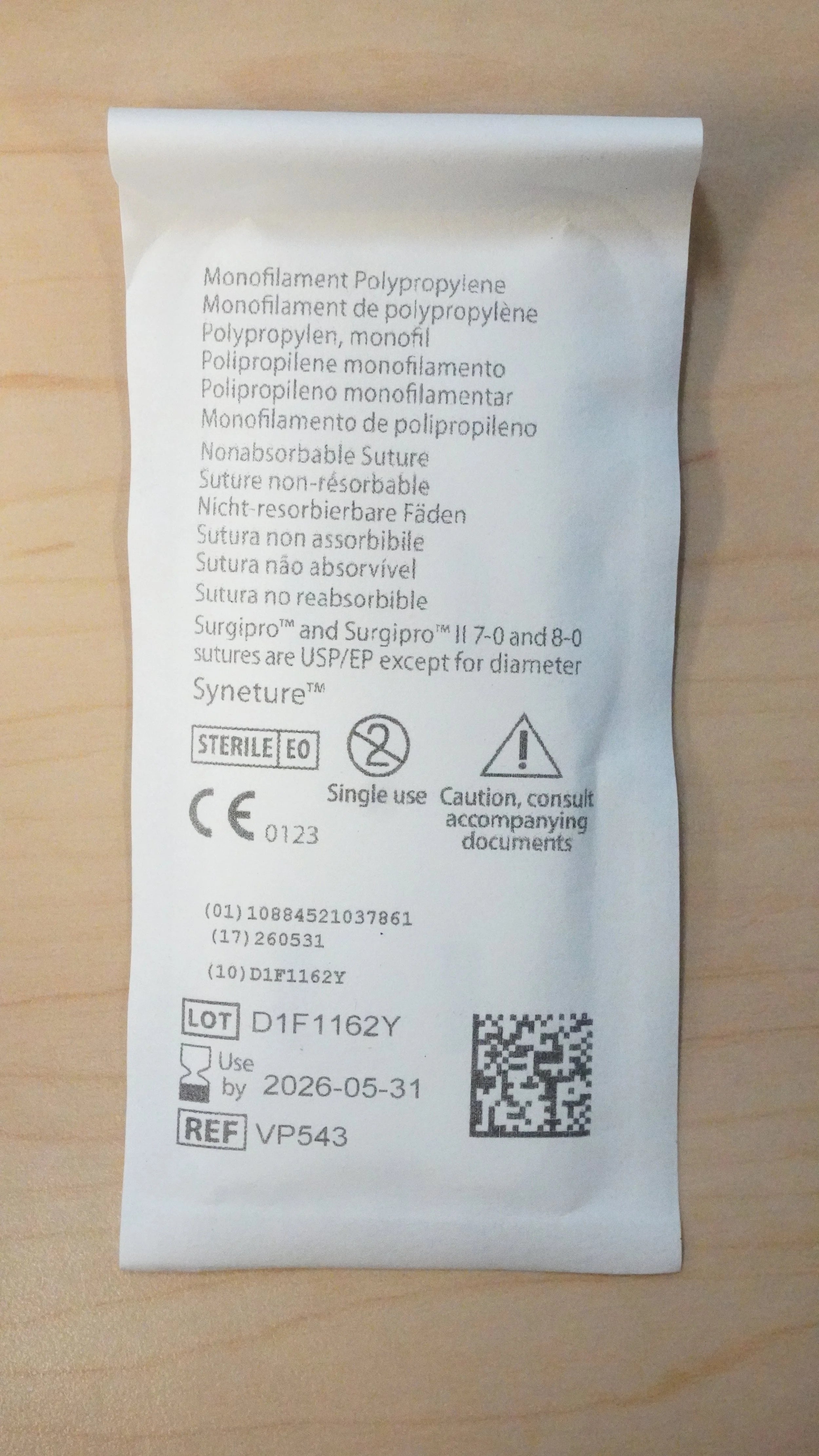 COVIDIEN | VP-543 | EACHES | Surgipro Monofilament Polypropylene 2-0 3 Metric 48" 120cm BLUE
