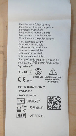 COVIDIEN | VP-707-X | EACHES | Surgipro Monofilament Polypropylene 6-0 0.7 Metric 24" 60cm BLUE