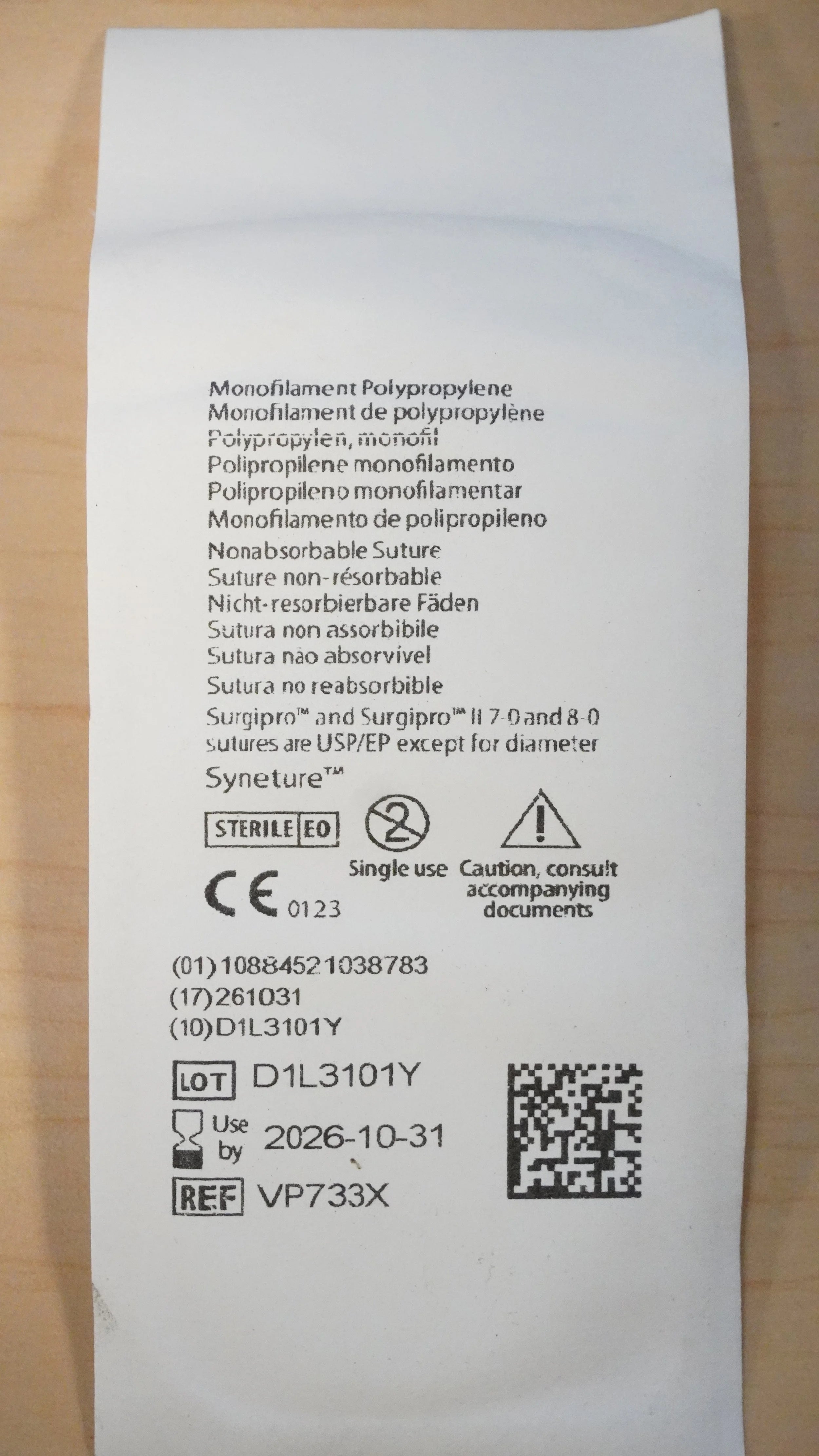 Covidien | VP-733-X | Surgipro II Monofilament Polypropylene 6-0 0.7 Metric 30" 75cm BLUE