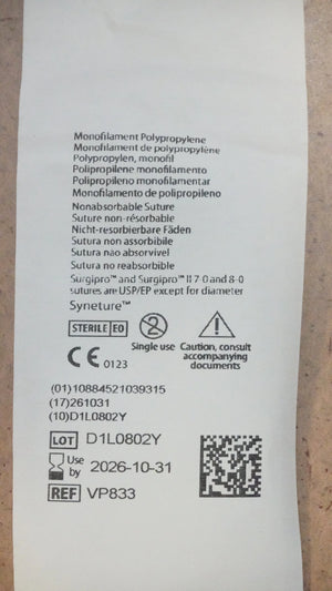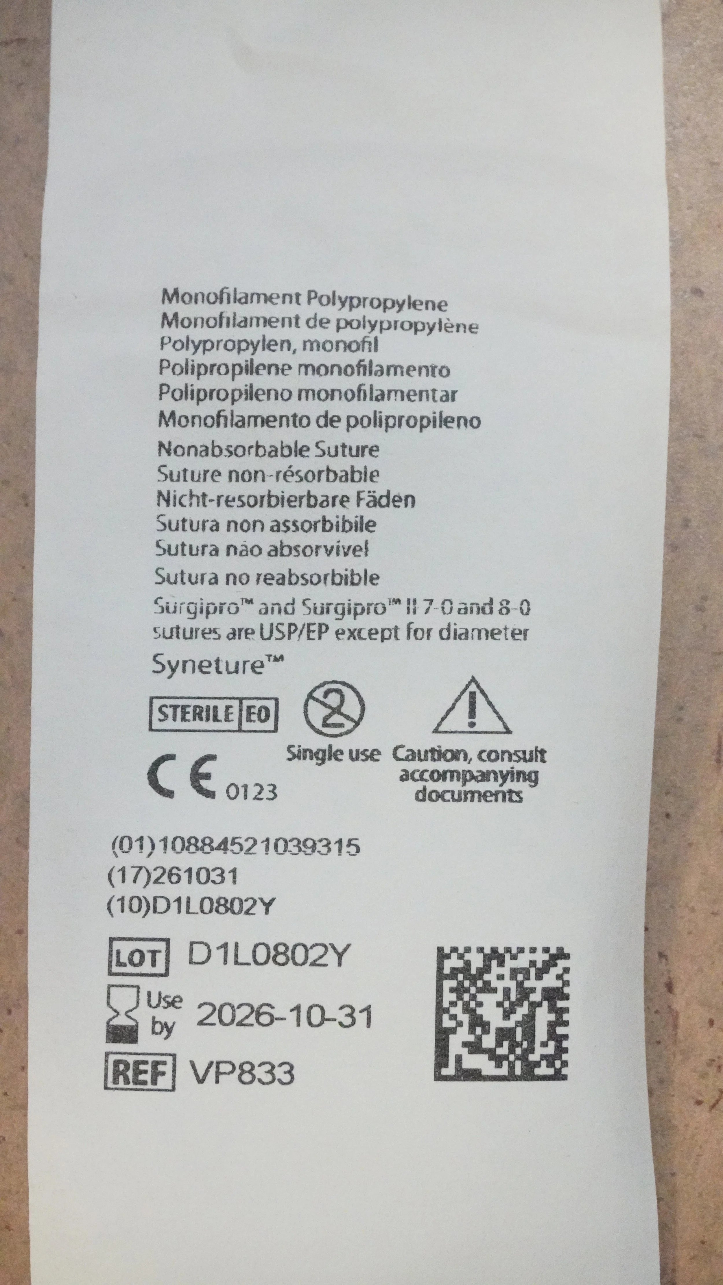 COVIDIEN | VP-833 | EACHES | Surgipro Monofilament Polypropylene 2-0 3 Metric 30" 75cm BLUE