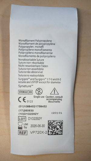 Covidien | VP720X-2 | Surgipro Monofilament Polypropylene 3-0 2 Metric 36" 90cm BLUE
