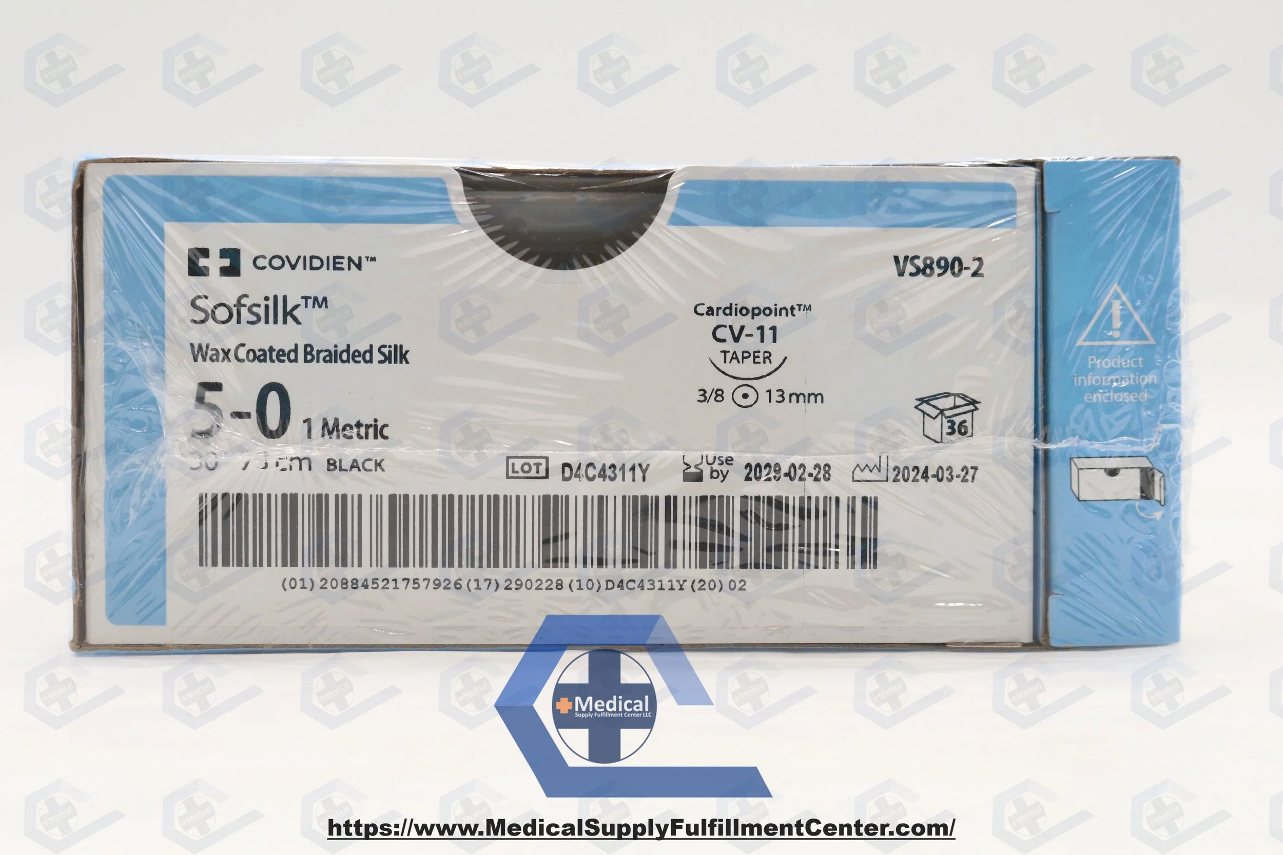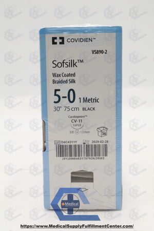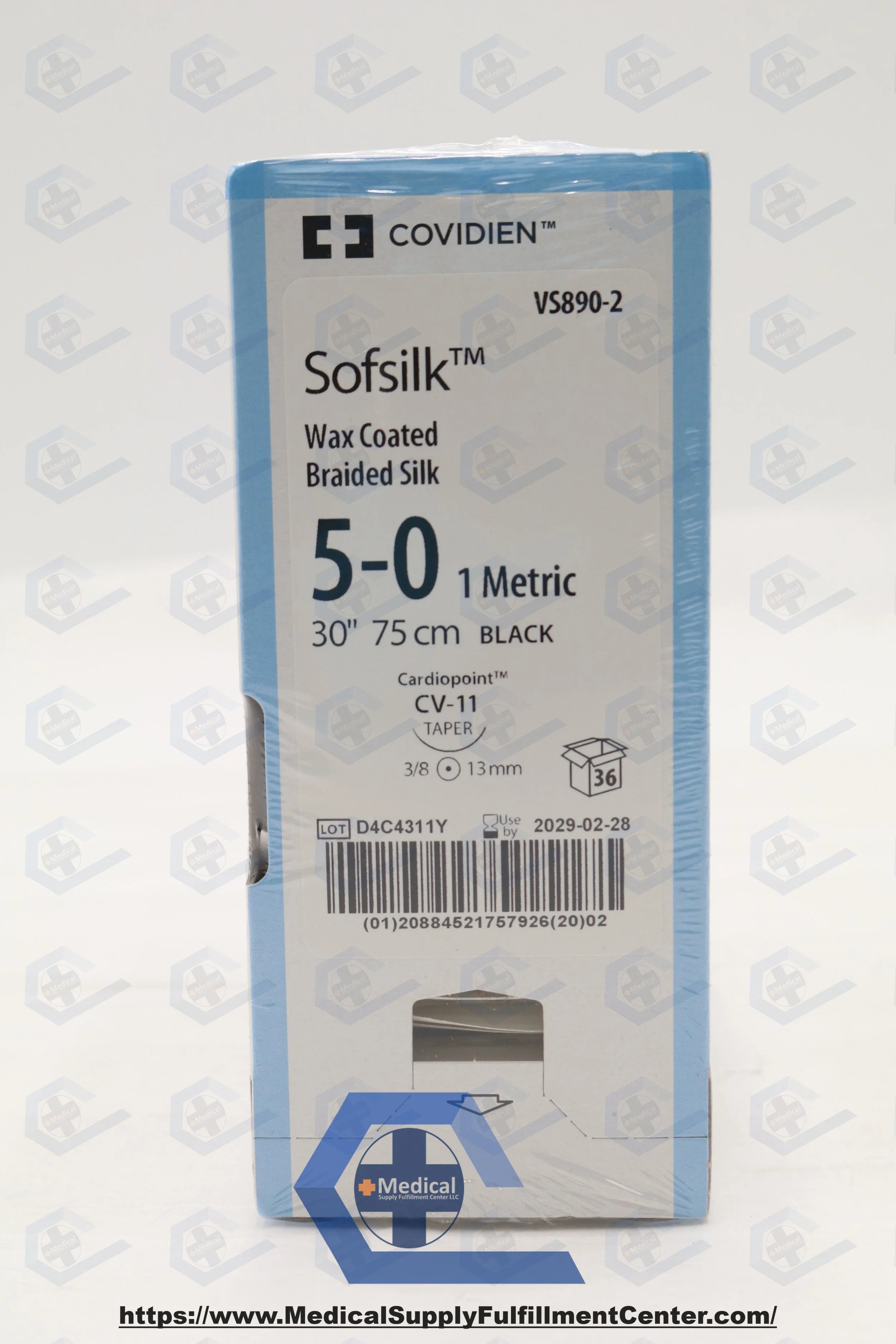 COVIDIEN | VS890-2 | INDATE | BOX OF 36 | SOFSILK Silk Suture, Taper Point, Size 5-0, Black, 30", Needle CV-11, 3/8 Circle