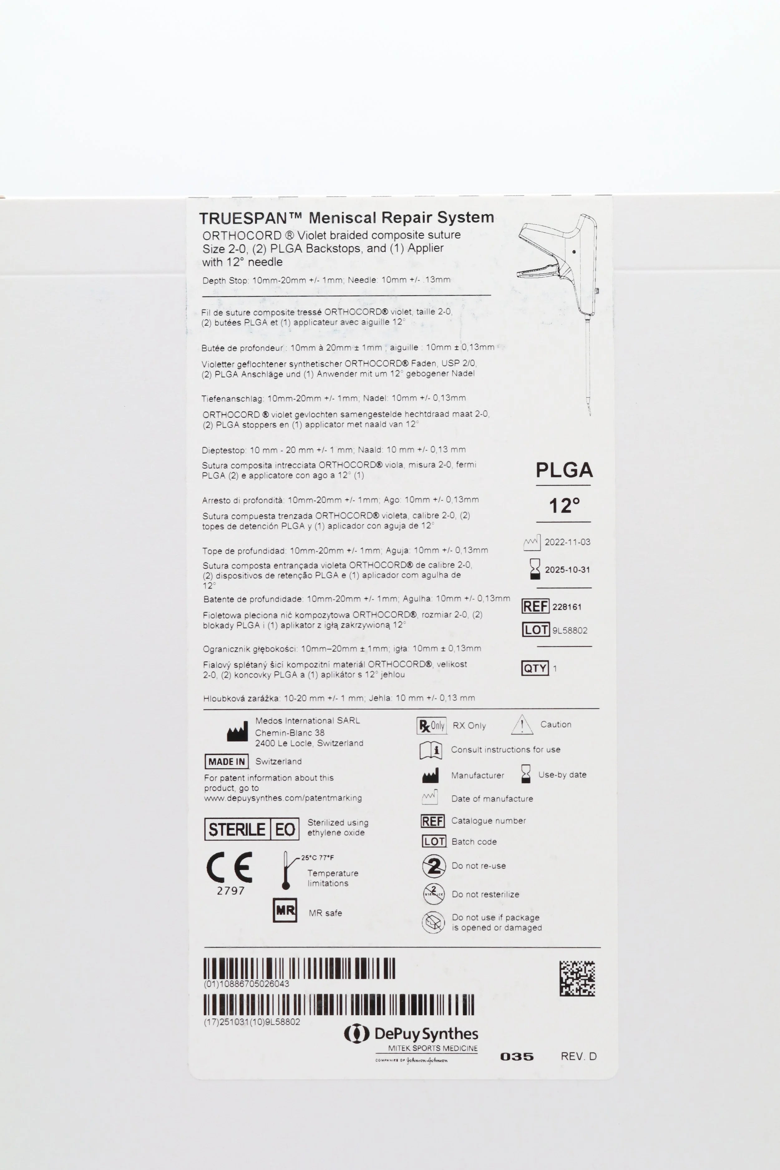 DePuy Synthes | 228161 | SHORT DATE | BOX OF 1 | TRUESPAN Meniscal Repair System