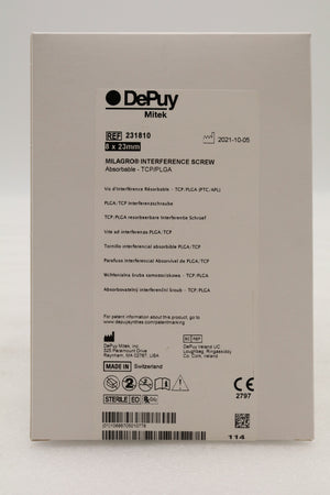 DePuy Mitek | 231810 | EXPIRED | EACHES | Milagro Interference Screw 8 X 23 mm, Absorbable-TCP/PLGA, Sterile, Single Use Only