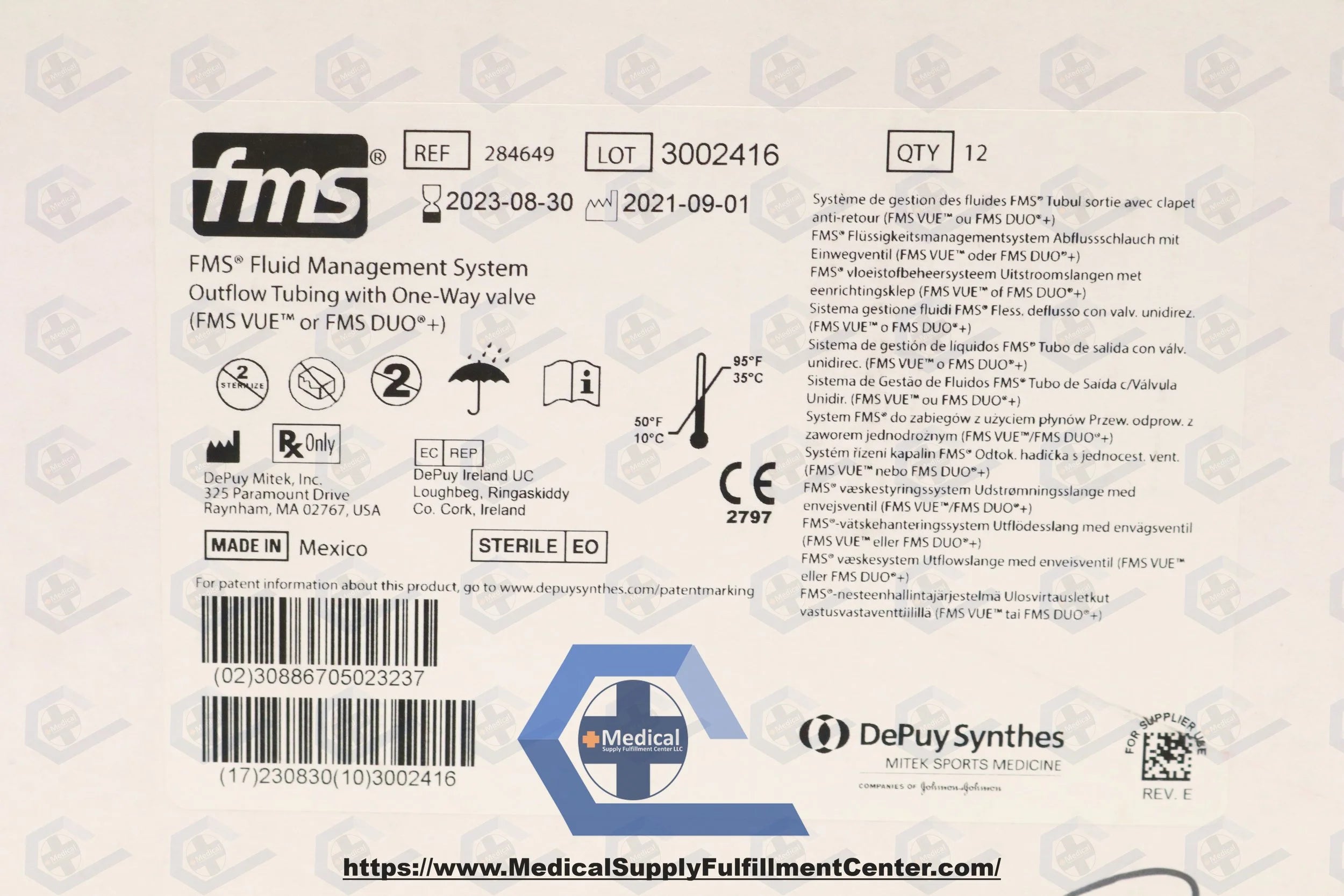 DePuy | 284649 | EXPIRED | CASE OF 12 | FMS Fluid Management System Outflow Tubing With One-Way Valve