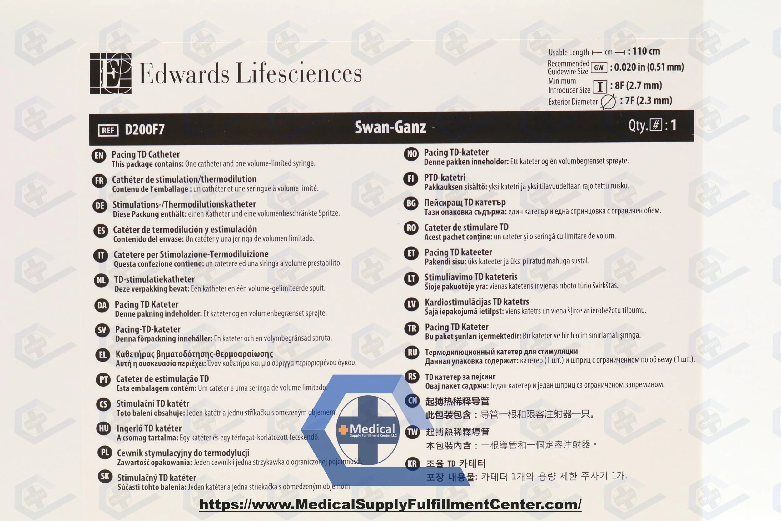 Edwards Lifesciences | D200F7 | SHORT DATE | EACHES | Swan-Ganz Pacing TD Cath. 7Fx 0.020inchx110cm x 8F