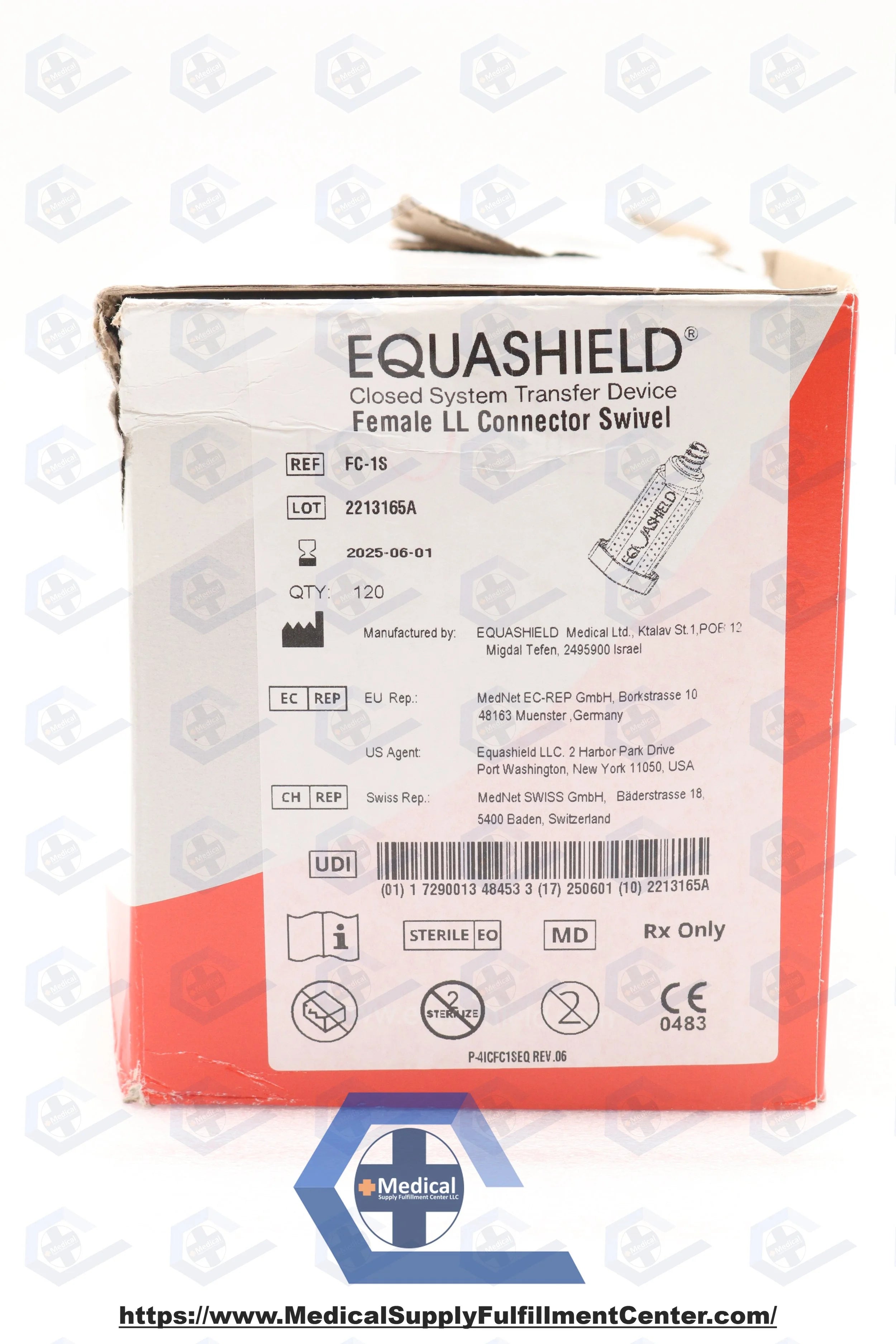 Equashield | FC-1S | SHORT DATE | BOX OF 120 | Closed System Drug Transfer Device and Components - Female Connector Luer Lock, Swivel