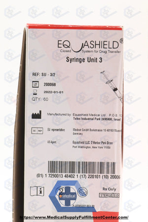 Equashield | SU-3/2 | EXPIRED | BOX OF 60 | Closed System Drug Transfer Device and Components - Syringe Unit, 3 mL