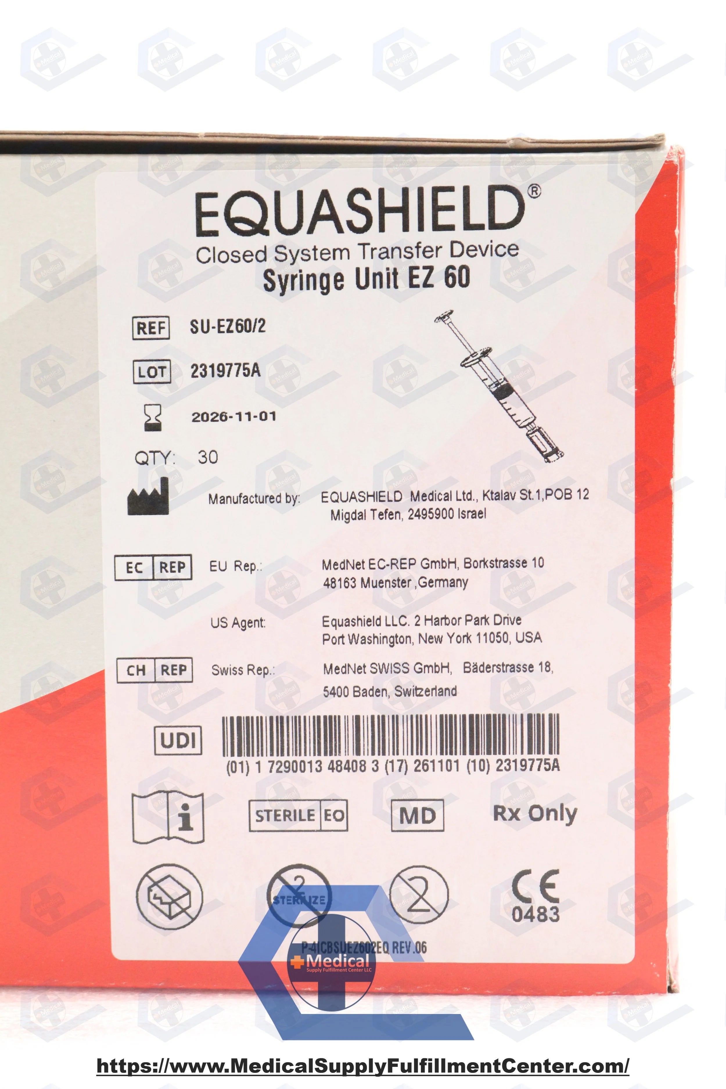 Equashield | SU-EZ60/2 | IN-DATE | BOX OF 30 | LLC Spyringes - 60 mL Unit Syringe, EQ EZ