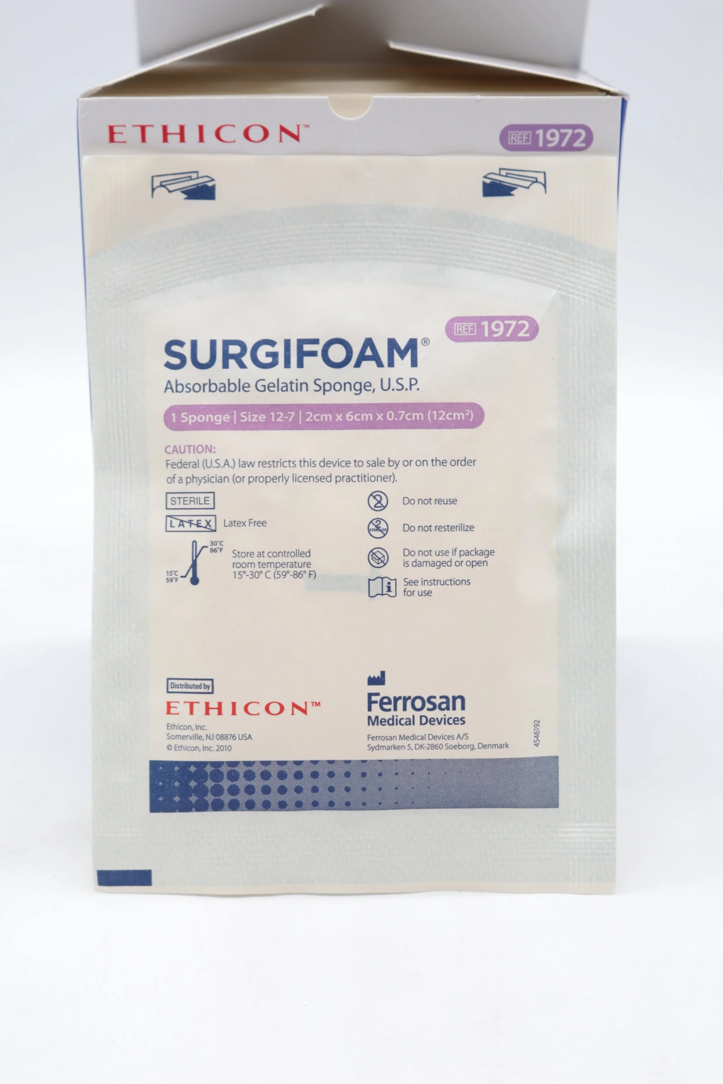 Ethicon | 1972 | Surgifoam Absorbable Gelatin Sponge Size 12-7 2cm x 6cm x 0.7cm