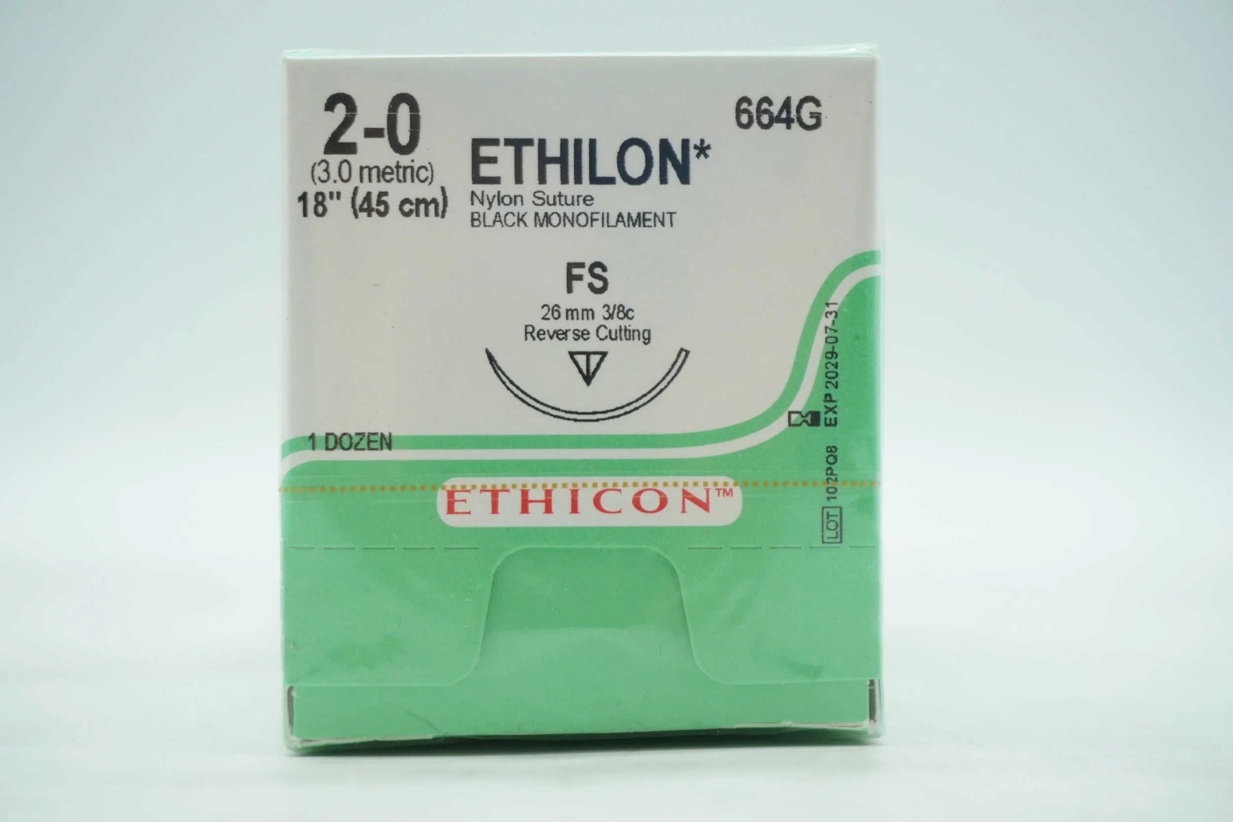 Ethicon | 664G | In Date | Box of 12 | Ethicon Ethilon Nylon Sutures - SUTURE, ETHILON, MONO, BLK, 2/0, 18, FS, VA -