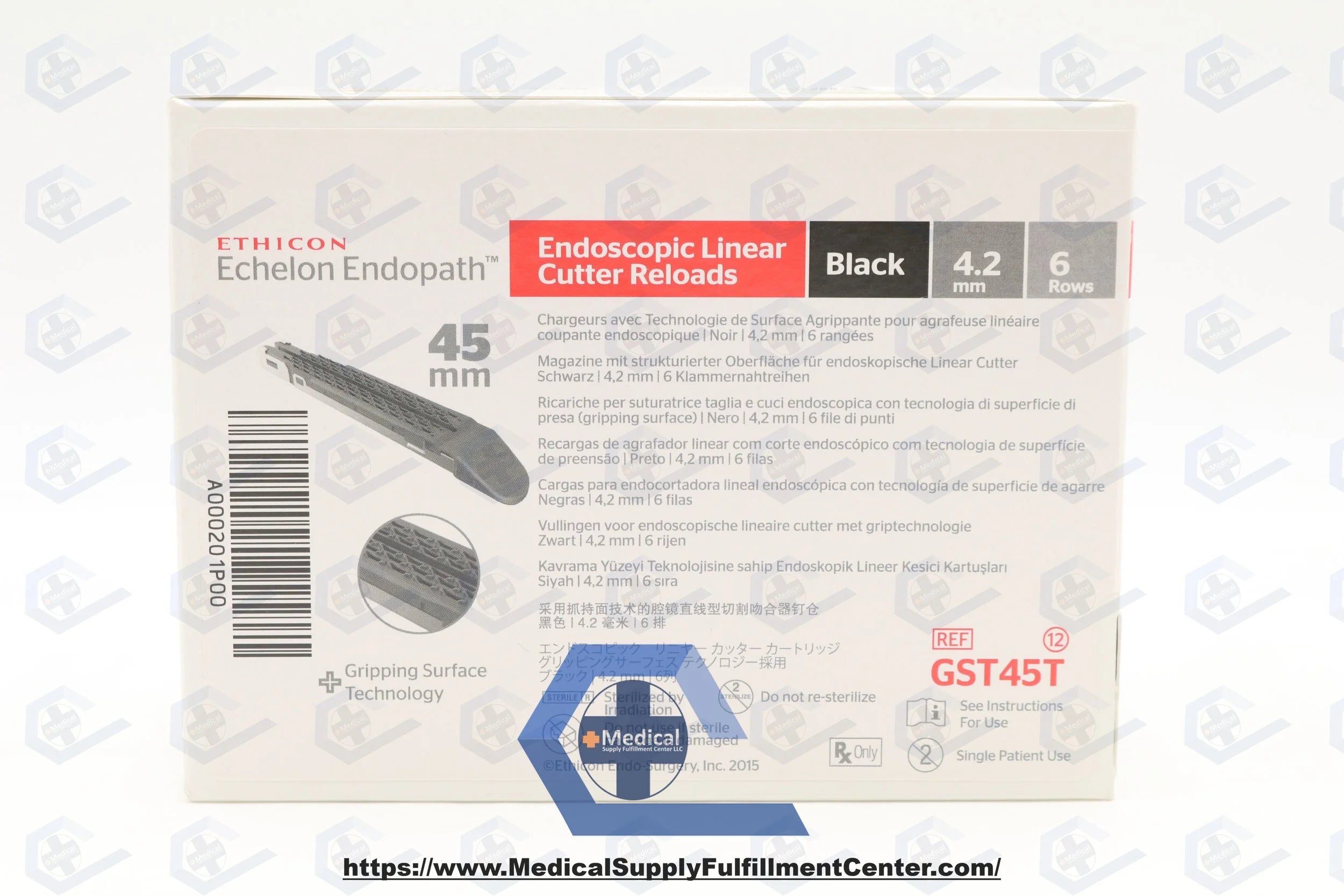 ETHICON GST45T BOX OF 12 Echelon Endopath 45mm Endoscopic Linear Cutter RELOADS Black 4.2mm 6 Row