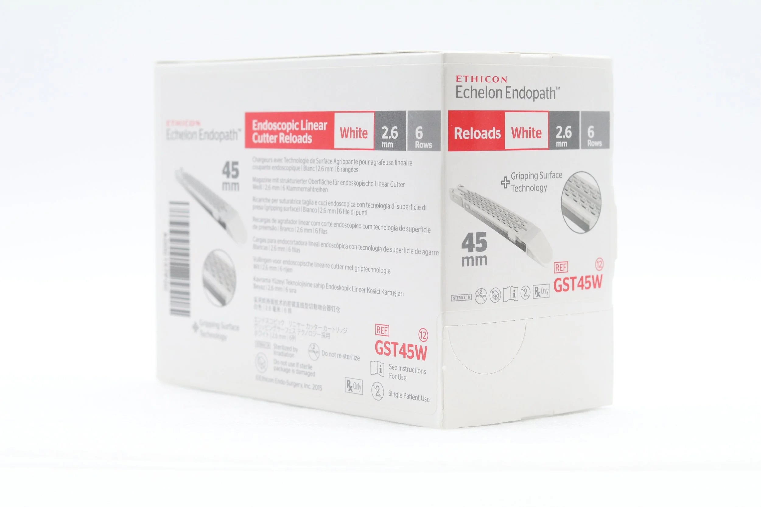 Ethicon | GST45W | EXPIRED | BOX OF 12 | Endoscopic Linear Cutter Reloads White 2.6mm 6 Rows