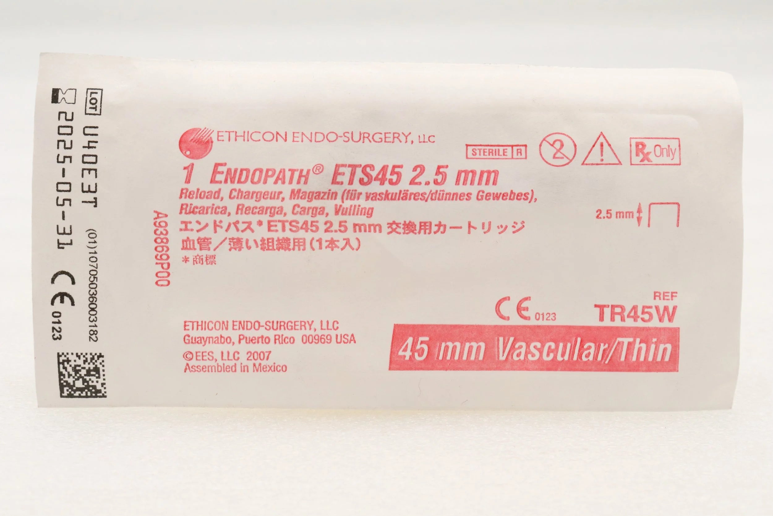 ETHICON | TR45W | SHORT DATE | EACHES | Articulating Linear Cutter Reloads, 45 mm Size, White, 2.5 mm Open Staple Height, 1 mm Close Staple Height, Vascular/Thin Tissue, 6 Staple Rows, For All ETS 45mm