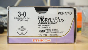 ETHICON | VCP774D | BOX OF 36 | Coated VICYL Plus Antibacterial Suture Polyglactin 910 3-0 18"